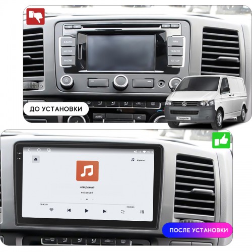 Штатная магнитола Lesko для Volkswagen Transporter T5 Рестайлинг 2009-2015 экран 10" 4/64 QLED CarPlay 4G Wi-Fi GPS 360 Prime