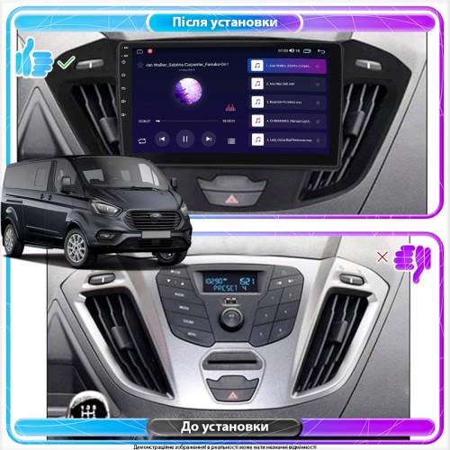 Штатная магнитола Lesko для Ford Tourneo Custom I Рестайлинг 2017-н.в. экран 9" 4/32Gb 4G Wi-Fi GPS Top