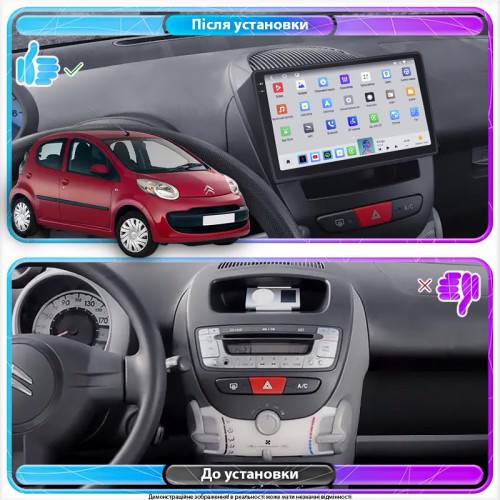 Штатная магнитола Lesko для Citroen C1 I 2005-2008 экран 10" 4/64 QLED CarPlay 4G Wi-Fi GPS 360 Prime