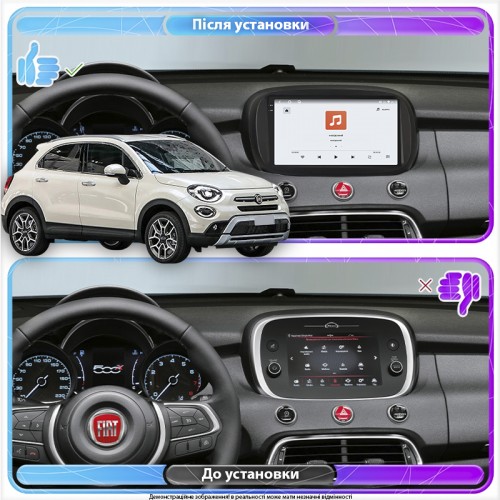 Штатная магнитола Lesko для Fiat 500X I Рестайлинг 2018-н.в. экран 9" 4/64 QLED CarPlay 4G Wi-Fi GPS 360 Prime