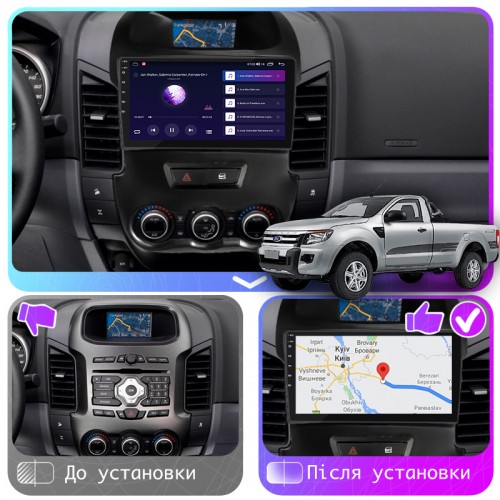 Штатная магнитола Lesko для Ford Ranger III 2011-2015 экран 9" 4/64Gb CarPlay 4G Wi-Fi GPS Prime