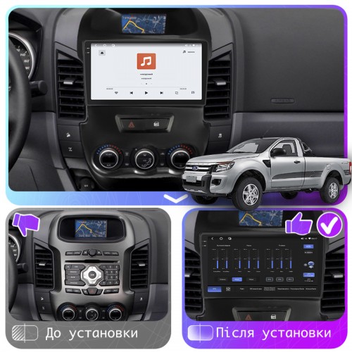 Штатная магнитола Lesko для Ford Ranger III 2011-2015 экран 9" 4/64 QLED CarPlay 4G Wi-Fi GPS 360 Prime