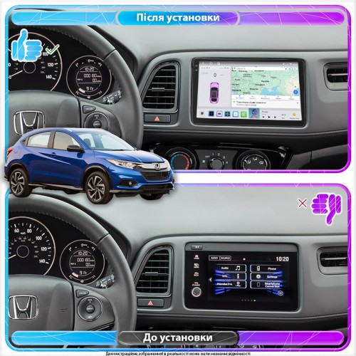 Штатная магнитола Lesko для Honda HR-V II Рестайлинг 2018-н.в. экран 9" 4/64 QLED CarPlay 4G Wi-Fi GPS 360 Prime