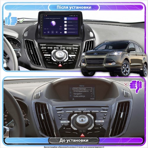 Штатная магнитола Lesko для Ford Kuga II Рестайлинг 2016-2019 экран 9" 4/64Gb 4G Wi-Fi GPS Top
