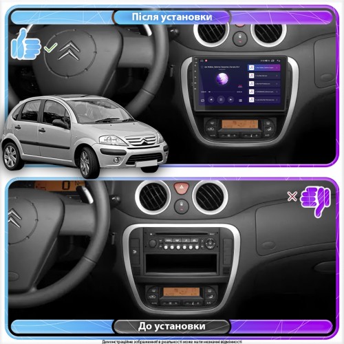 Штатная магнитола Lesko для Citroen C3 I Рестайлинг 2005-2010 экран 9" 4/32Gb 4G Wi-Fi GPS Top