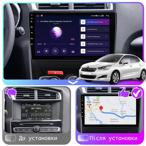 Штатная магнитола Lesko для Citroen C4 II Рестайлинг 2015-н.в. экран 10" 4/64Gb CarPlay 4G Wi-Fi GPS Prime