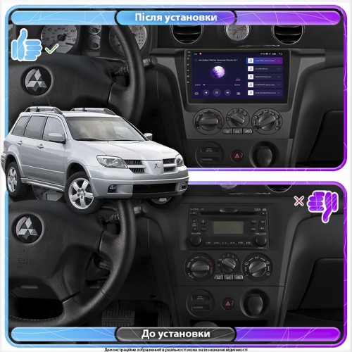 Штатная магнитола Lesko для Mitsubishi Outlander Left wheel 2003-2006 экран 9" 4/32Gb 4G Wi-Fi GPS Top