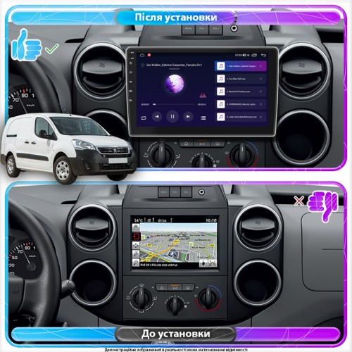 Штатная магнитола Lesko для Peugeot Partner II Рестайлинг 2 2015-н.в. экран 9" 4/64Gb CarPlay 4G Wi-Fi GPS Prime