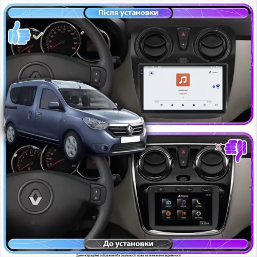 Штатная магнитола Lesko для Renault Dokker I 2012-2021 экран 9" 4/64 QLED CarPlay 4G Wi-Fi GPS 360 Prime