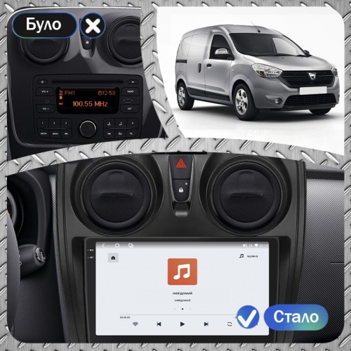 Штатная магнитола Lesko для Dacia Dokker I Рестайлинг 2017-н.в. экран 9" 4/64 QLED CarPlay 4G Wi-Fi GPS 360 Prime