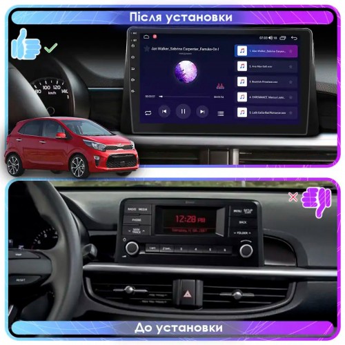 Штатная магнитола Lesko для Kia Picanto III 2017-2021 экран 9" 1/16Gb Wi-Fi GPS Base