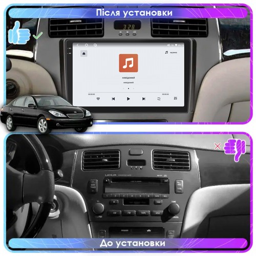 Штатная магнитола Lesko для Lexus ES IV Рестайлинг 2003-2006 экран 9" 4/64 QLED CarPlay 4G Wi-Fi GPS 360 Prime