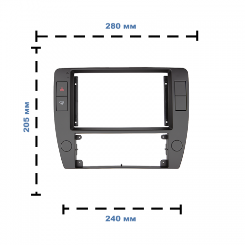 | Габаритные размеры под магнитолу, мм | ширина 240 мм по низу, 280 мм по верху,высота 205 мм |