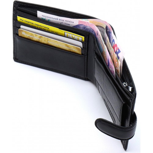 Багатофункціональний чоловічий гаманець із застібкою на кнопку ідеально підходить для зберігання грошей та цінних документів. Купюри зручно складати в 3 відділення по номіналам. Прилеглі кишені – надійне місце для резервного «капіталу». Монети можна розміщати зручно у кишеньці на кнопці. У шкіряному гаманці також є 3 секції для банківських карток, водійських прав та візиток.