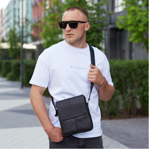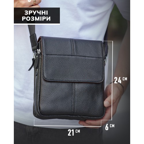 Чоловіча сумка шкіряна планшет 21х24х6, барсетка на одне плече Tiding Bag M1254A чорна