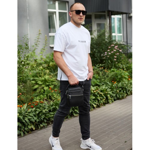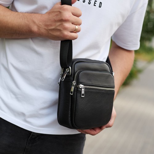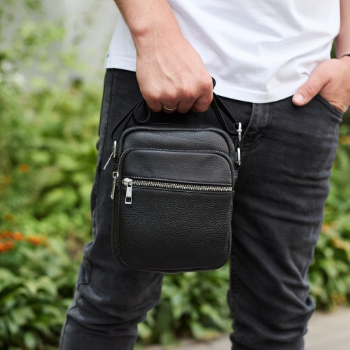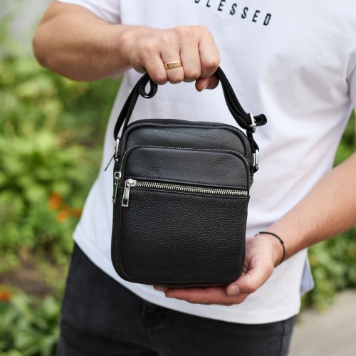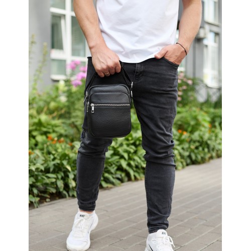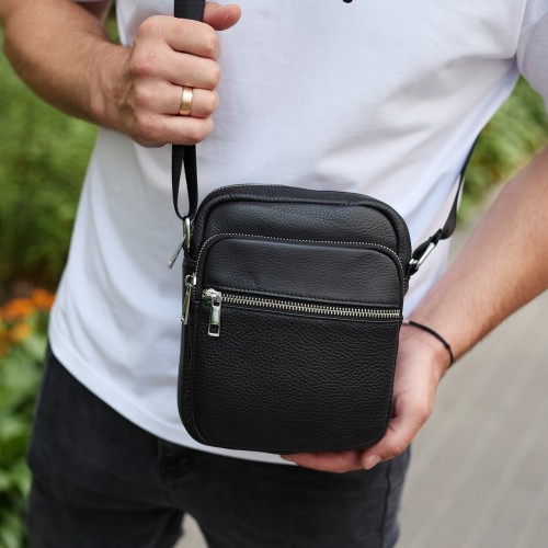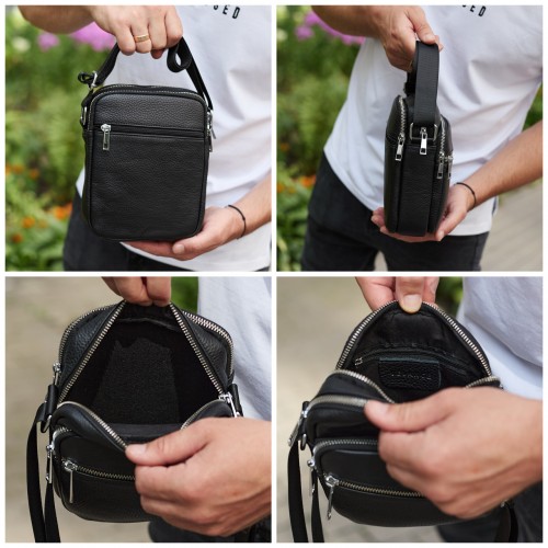 Чоловіча шкіряна барсетка 21х17х7, сумка для міста, компактний месенджер для щоденного використання, чорна