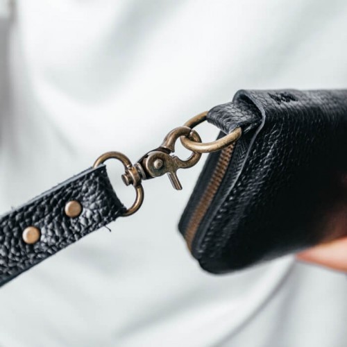 100% ручної роботи українських майстрів. Використовували найкращі матеріали. Цей чорний клатч замінить вам гаманець чи портмоне.