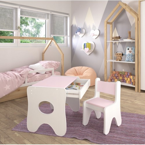 Комплект дитячих меблів столик та стільчик 70×45×51, стіл та стілець у дитячу, білий з рожевим