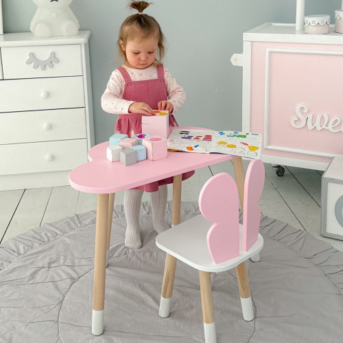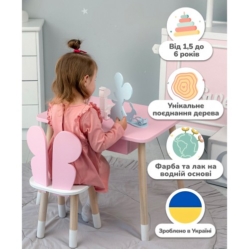 Ви можете зібрати повноцінний комплект – столик зі стільчиком в єдиному стилі. Такий набір стане зручним і практичним рішенням для дитячої кімнати, забезпечуючи малюкові комфортне місце для занять та ігор.