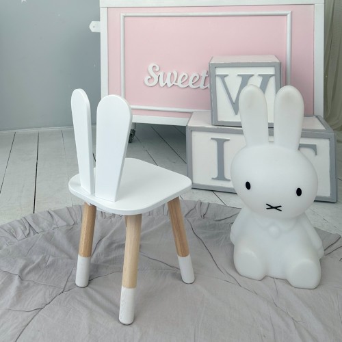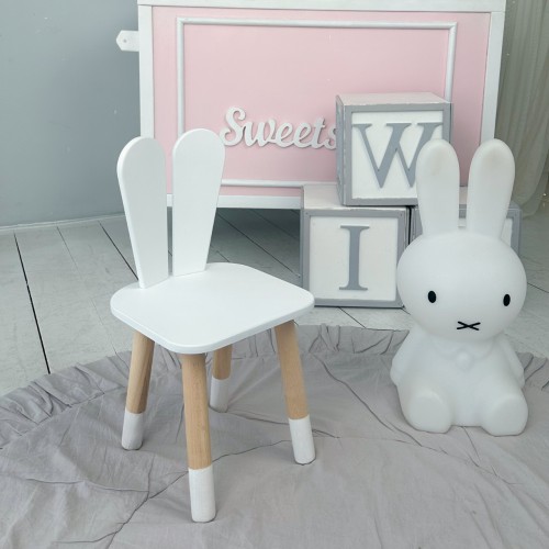Дитячий стільчик вушка зайчика 26.5х26х25 см, стілець у дитячу кімнату до 7 років, білий