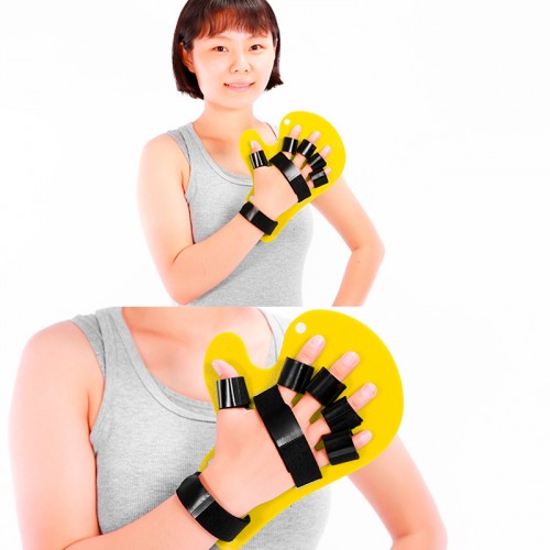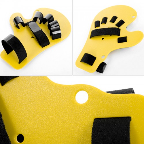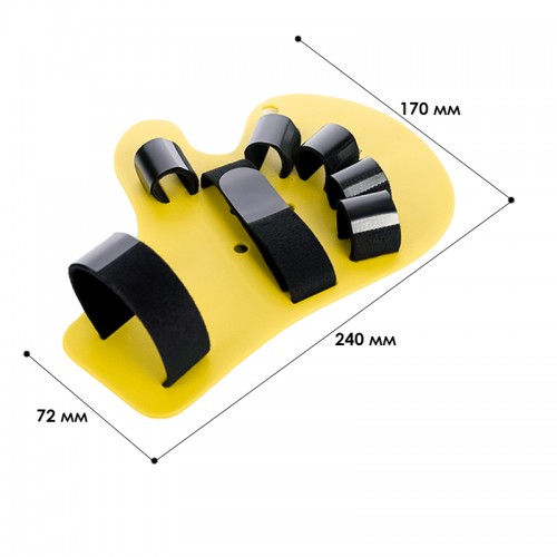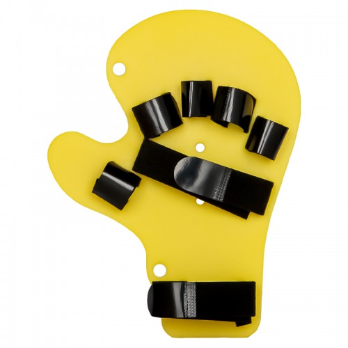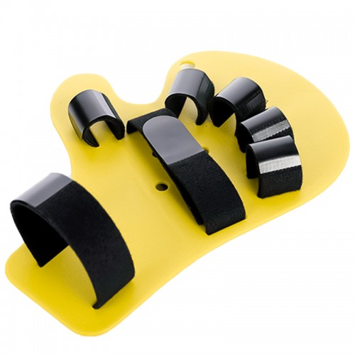 Пальцы и запястье фиксируются широкими нейлоновыми полосками, которые можно отрегулировать индивидуально. Благодаря им и пластиковой основе пальцы и рука удерживаются в правильном положении.