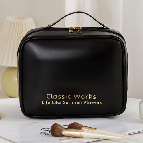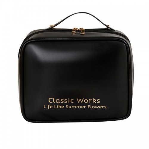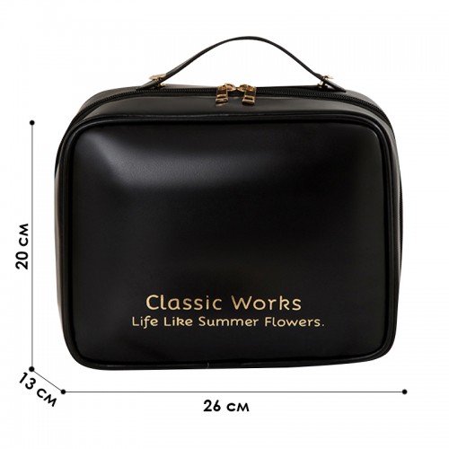 Изготовленная из качественного материала с гладкой текстурой, косметичка имеет жесткую форму, которая надежно защищает содержимое от повреждений. Благодаря удобной ручке её легко переносить, а стильный внешний вид позволяет брать с собой даже в премиальные заведения или деловые поездки.