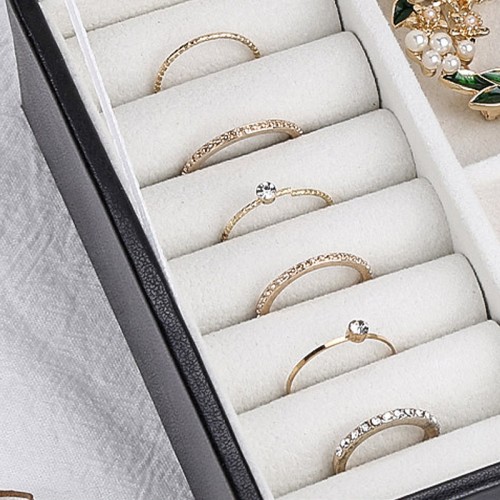 Этот роскошный органайзер для ювелирных изделий предназначен для того, чтобы хранить ваши драгоценности в безопасности и порядке. Благодаря внутреннему распределению, вы сможете аккуратно разместить кольца, серьги, браслеты и другие аксессуары. Каждый отсек имеет мягкое велюровое покрытие, предохраняющее ювелирные изделия от царапин и повреждений.