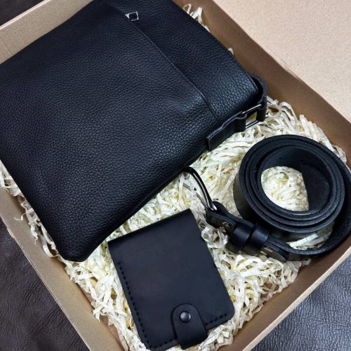Подарунковий набір Luxury Box з сумки через плече, ременя та гаманця для справжнього чоловіка!