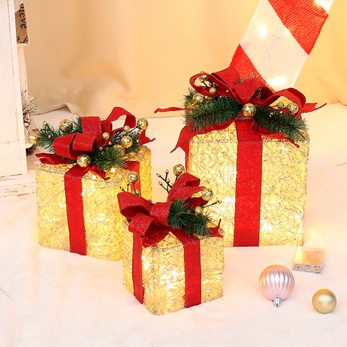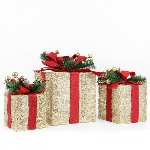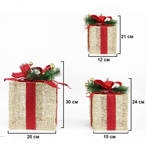 Новогодний декор с подсветкой T1230573 набор 3 шт Новогодние подарки Gold