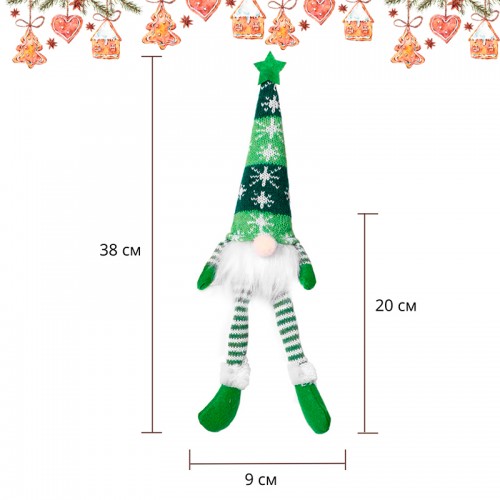 Новогодний Гном N2 для праздничного декора с Led подсветкой 20 см Green