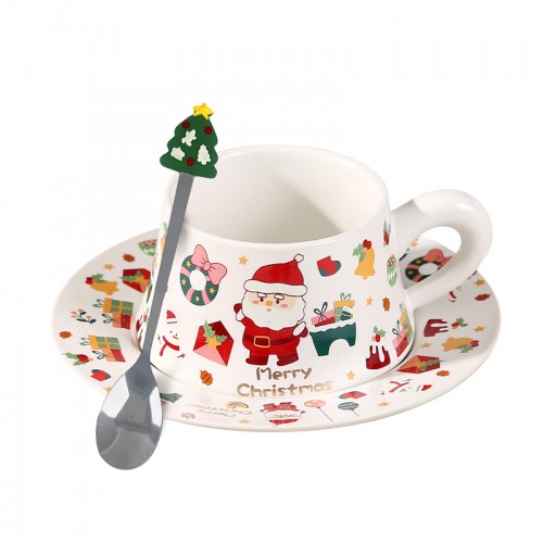 Рождественская чашка "Merry Christmass" Санта-Клаус JJX005 кружка с блюдцем с ложечкой новогодняя в подарочной упаковке White