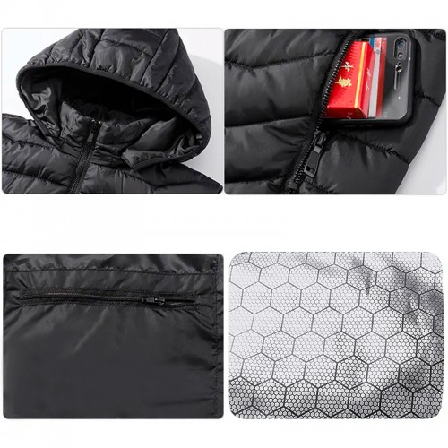Куртка с подогревом от повербанка USB M09-4 Black 4 зоны подогрева для туризма рыбалки активного отдыха 2XL