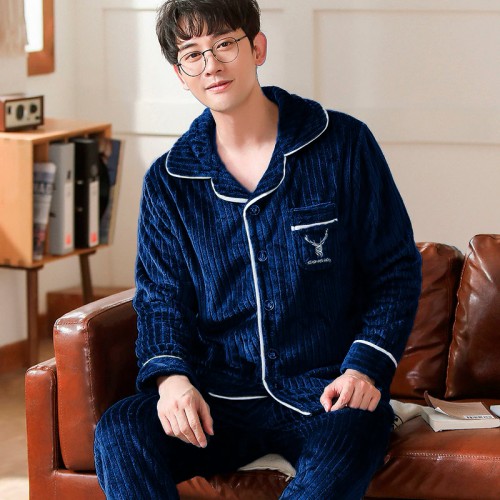 Комплект мужской пижамы CK-208 Dark Blue рубашка с длинным рукавом и штанами теплая XL
