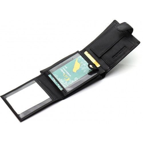 Шкіряний гаманець відповідного дизайну легко поміститься в кишеню піджака, куртки чи пальта. Чоловікам сподобається тримати купюри та монети в одному місці. У виробі є 3 відділення для великих банкнот, одне з них на блискавці. Для монет є кишеня на кнопці. У секціях чоловічого гаманця зручно носити карти для безготівкового розрахунку. Прозорі віконця підійдуть для візиток, фото та прав.