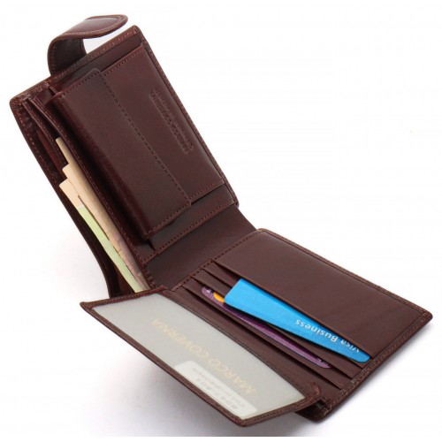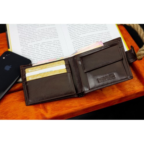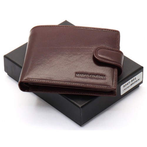 Коричневе чоловіче портмоне на кнопці з натуральної шкіри Marco Coverna B047-801