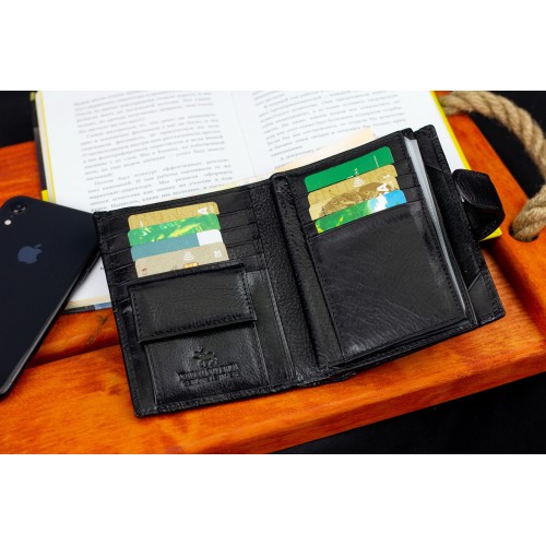 Чорне чоловіче портмоне з натуральної шкіри з відділенням під автодокументи Marco Coverna MC-2090H-1