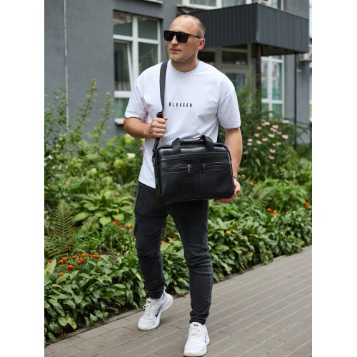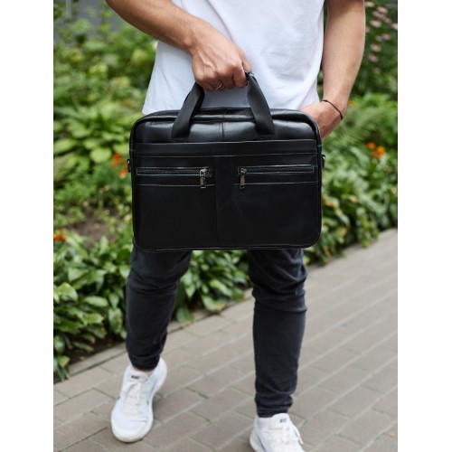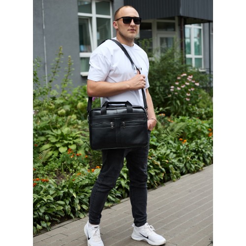 Чоловічий портфель для ноутбука 38х28х8, офісна шкіряна сумочка, міська чоловіча ділова сумка, чорна