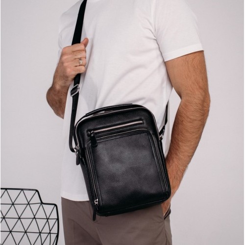 Чоловіча сумка-барсетка через плече шкіряна чорна з ручкою Tiding Bag M32432
