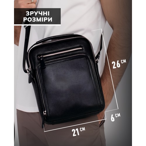 Шкіряна чоловіча сумка-барсетка 21х26х6, месенджер через плече з ручкою Tiding Bag M32432 чорний