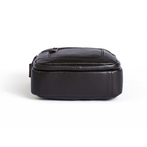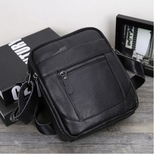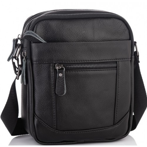 Практична чоловіча сумка виготовлена з якісніх матеріалів: натуральної шкіри, текстильної підкладки та металевої фурнітури. Чоловіча сумка має зручний регульований ремінь через плече. Ця шкіряна сумка-месенджер має два відділення, які закриваються за допомогою блискавок. На тильній стороні сумки розташована кишеня, який так само закривається за допомогою блискавки. На своїй лицьовій частині ця шкіряна сумка має ще дві кишені, які так само закриваються за допомогою блискавок.