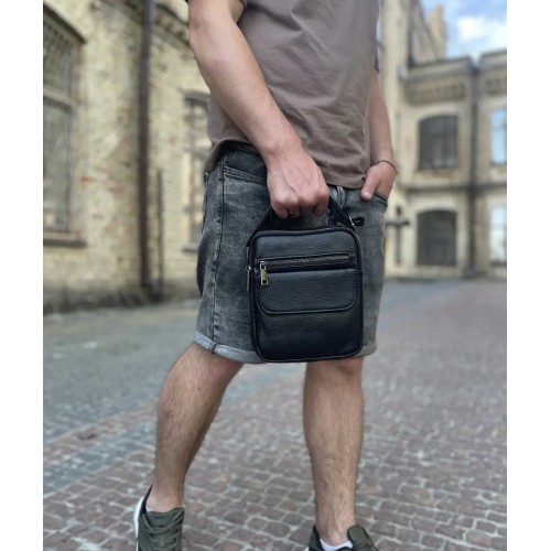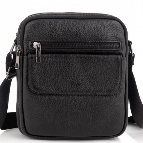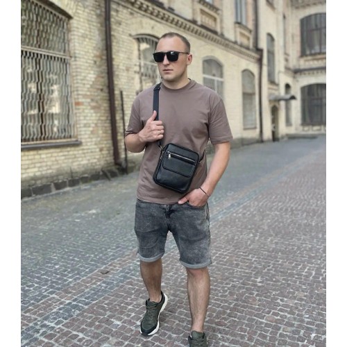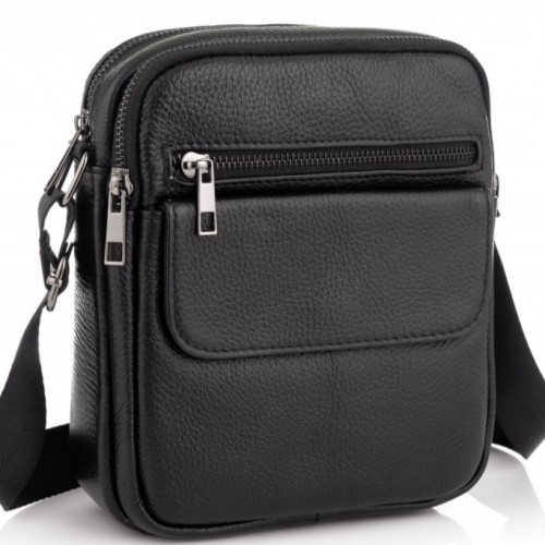 Шкіряна чоловіча сумка 17х21х5, барсетка через плече Tiding Bag 4134A чорна