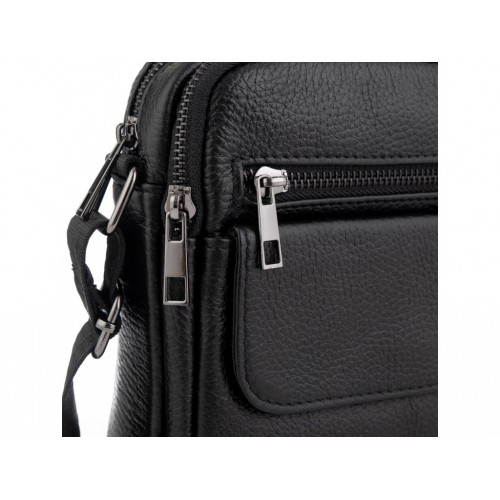 Шкіряна чоловіча сумка через плече чорна Tiding Bag 4134A