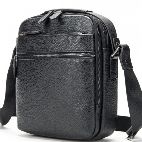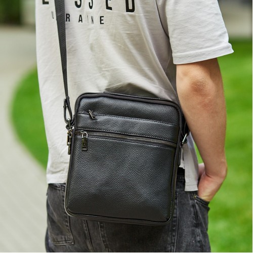 Шкіряна чоловіча сумка через плече чорна Tiding Bag MN-284334