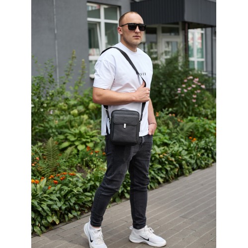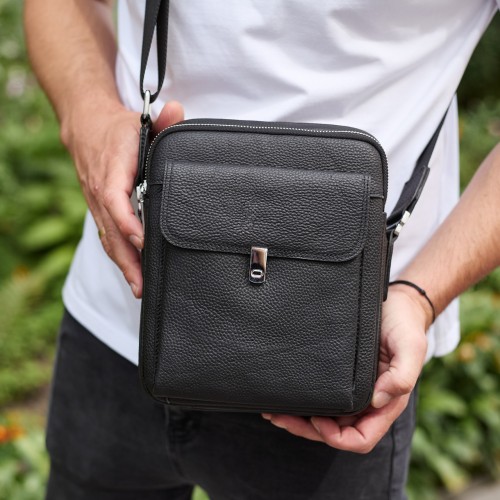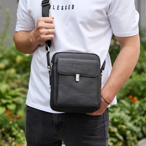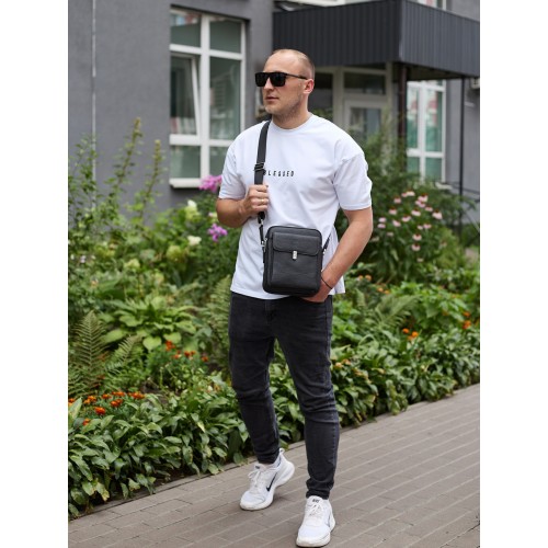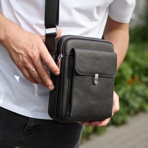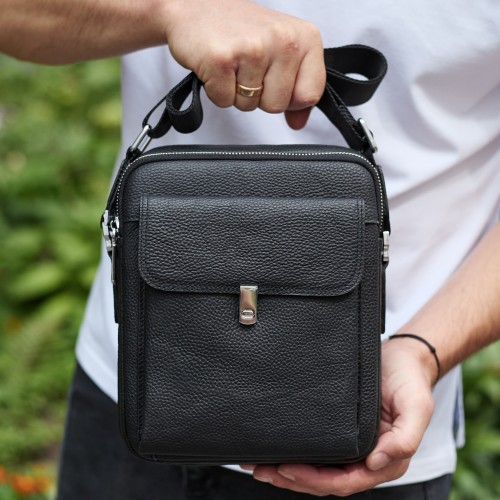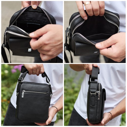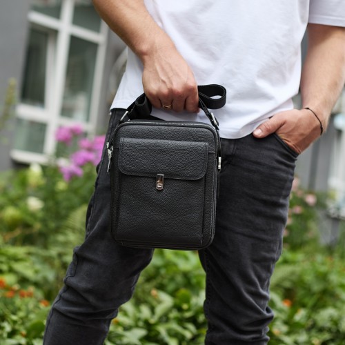 Сумка-барсетка чоловіча шкіряна 24х20х8, компактний месенджер для щоденного використання, чорна