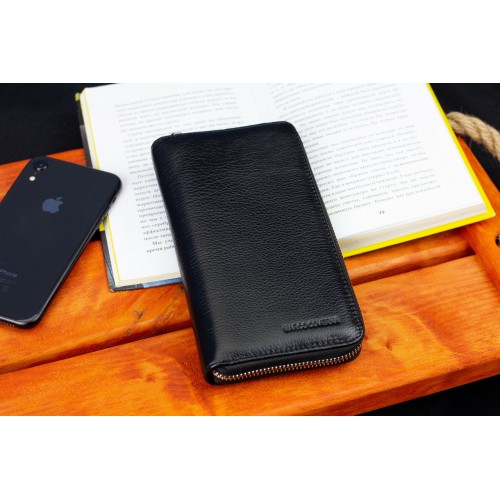 Чорний чоловічий гаманець-клатч на блискавці з натуральної шкіри Marco Coverna MC-802-1