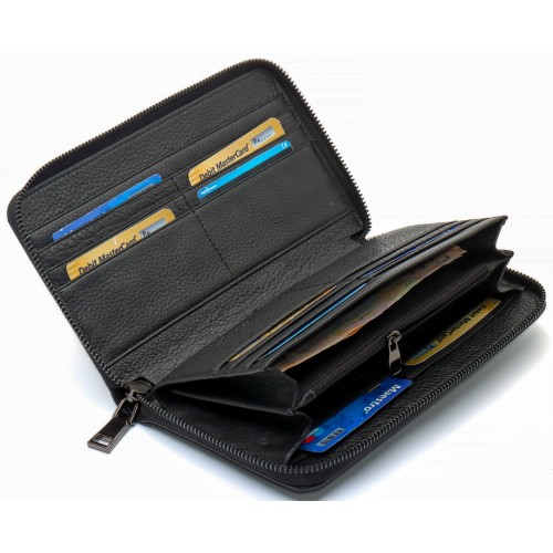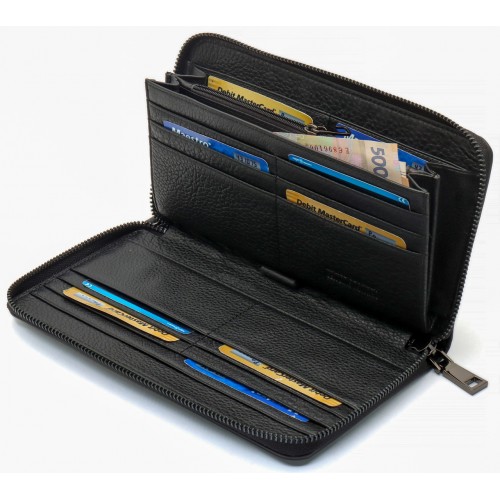 Чорний гаманець-клатч з блоком під картки під однією блискавкою з натуральної шкіри Marco Coverna МС-5901Q
