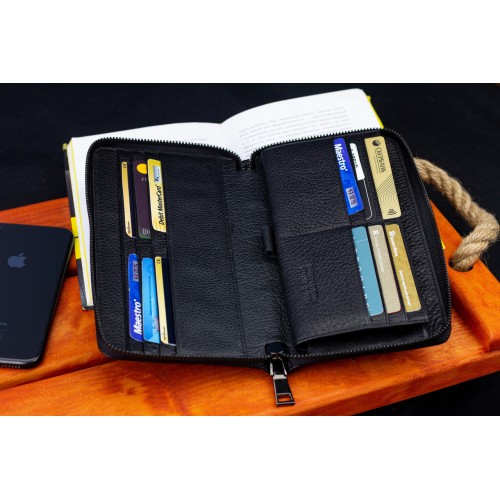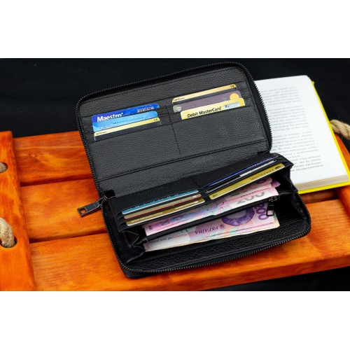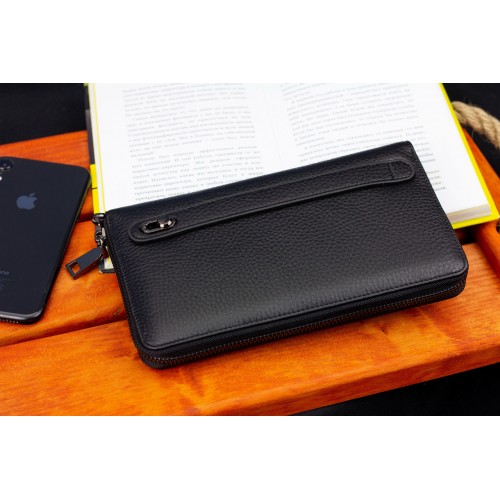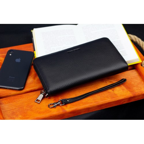Шкіряний чоловічий гаманець оснащений двома ремінцями: на долоню та зап'ястя (знімний). Тому аксесуар можна носити у різний спосіб. Три відділення під купюри з розширювачами дуже вмістовні. Внутрішня перегородка на блискавці виконує роль кишеньки для монет. 2 прилеглі кишені вдало підходять для зберігання суми, яку потрібно відкласти. У цьому гаманці передбачено 12 секцій під банківські картки, які зручно виймати та засовувати назад.