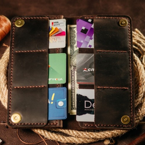 Коричневий клатч Лонгер замінить вам гаманець або портмоне. Легко поміститися у сумку, бананку чи портфель.