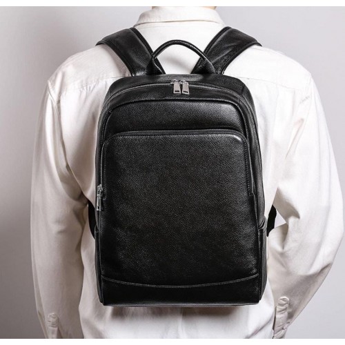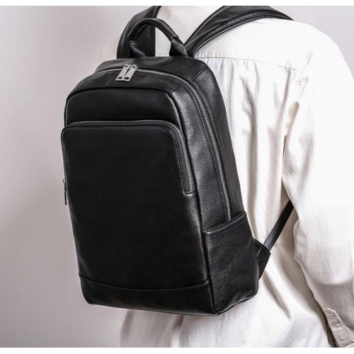 Рюкзак чоловічий шкіряний. Чорний міський рюкзак для ноутбука та документів Tiding Bag B2-7371A