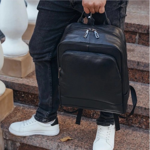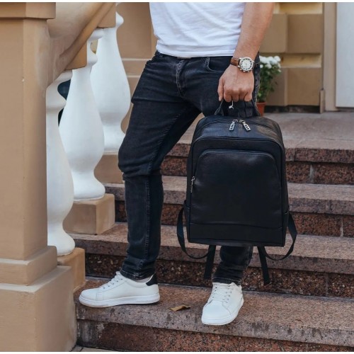 Стильний рюкзак з якісної натуральної шкіри. Дуже практичний і місткий. На лицьовій стороні розташований функціональний кишеню. Велике основне відділення. Якісна фурнітура. Модель відмінно підійде для стильних сучасних чоловіків.